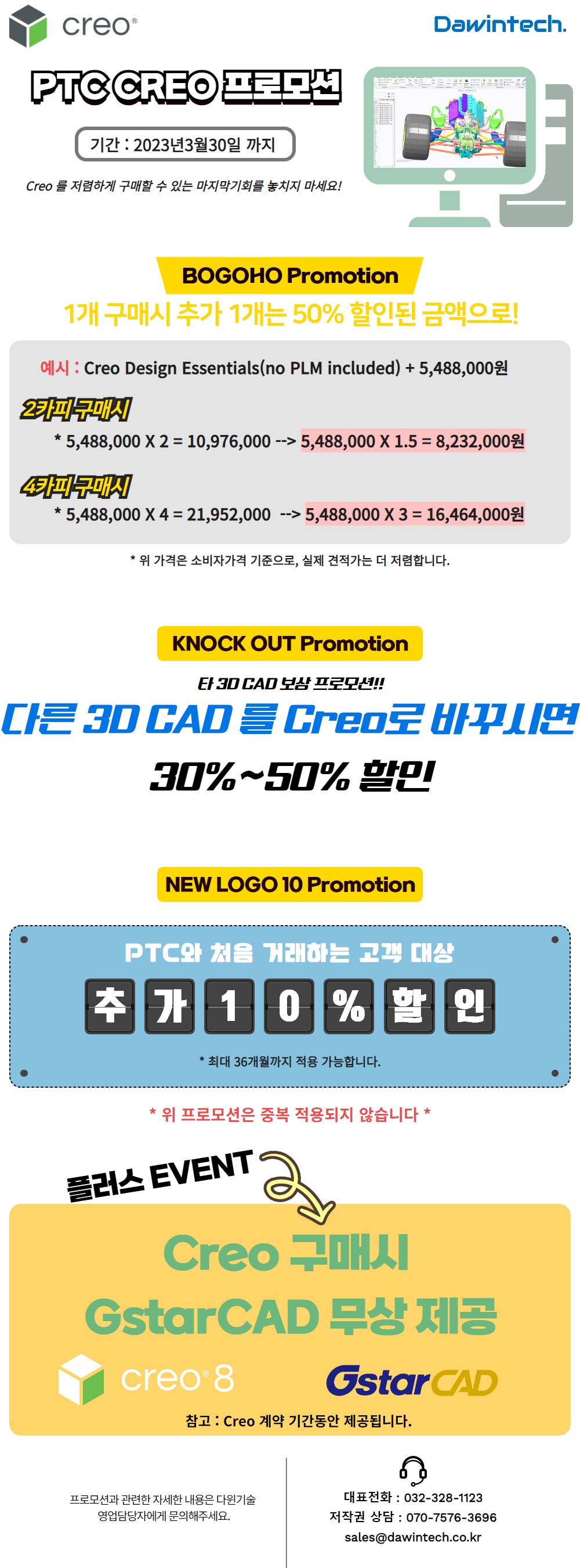 CREO·Î ¸íĪÀÌ ¹Ù²ï PTCÀÇ 3D CADÀÇ 2023 ÇÁ·Î¸ð¼ÇÀ» 2023³â 3¿ù30ÀÏ ±îÁö ¾Æ·¡¿Í °°ÀÌ ÁøÇà ÇÕ´Ï´Ù.