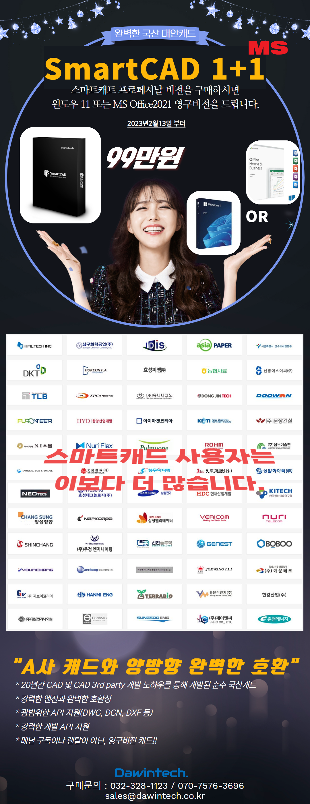 ¡ÙSmartCAD Professional : 990,000 ¿ø(VATº°µµ) ¡ÙMS Office 2021 Home&Business ±â¾÷¿ë / ¿µ±¸¹öÀü ÁõÁ¤