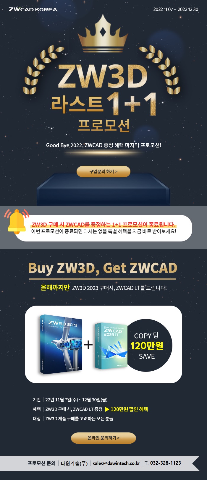 ¾È³çÇϼ¼¿ä ´ÙÀ©±â¼ú ÀÔ´Ï´Ù. ¿ÃÇØ ¸¶Áö¸·±îÁö ZW3D ±¸¸Å¿¡ ÇÑÇÏ¿© 2D CAD LT ¹«·á ÁõÁ¤ ÇÁ·Î¸ð¼ÇÀÌ ÀÖ½À´Ï´Ù. 3D ¿Í 2D ¸ðµÎ »ç¿ëÇϽô ºÐµé²²´Â ´õ¾øÀÌ ÁÁÀº ±âȸ ÀÔ´Ï´Ù.
