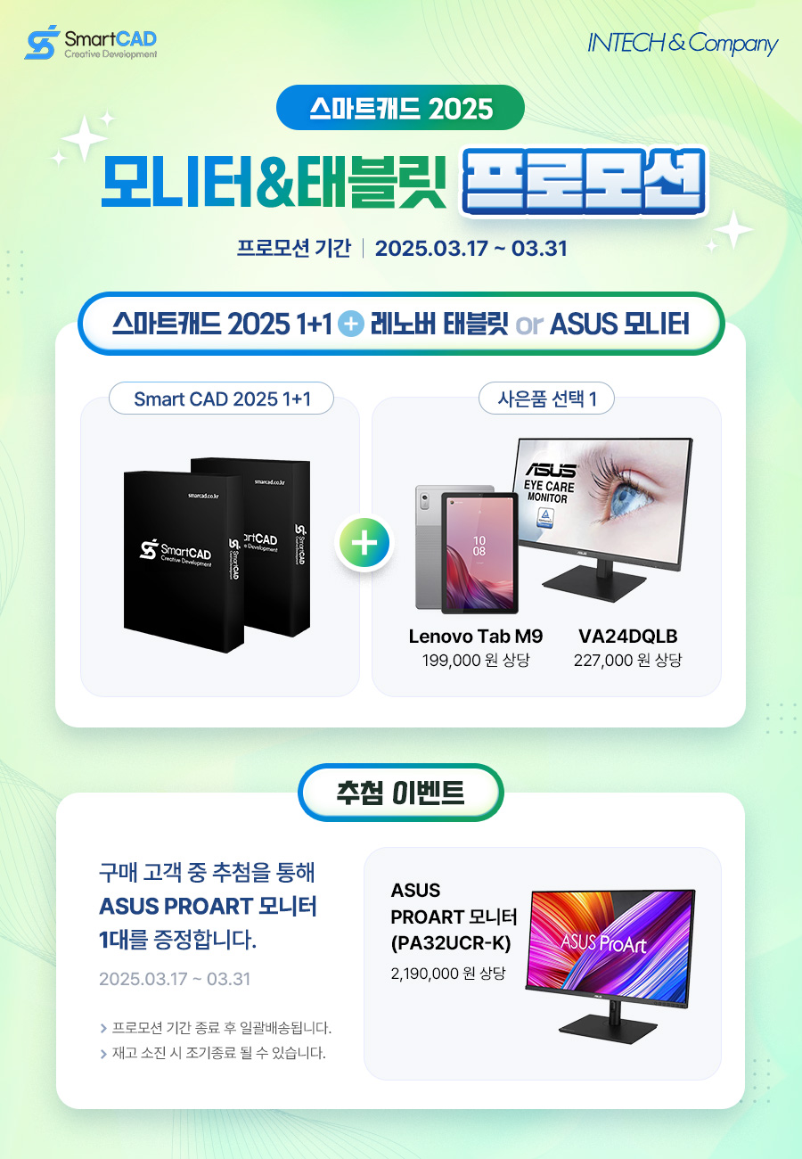 SmartCAD¸¦ STD / PRO »ó°ü¾øÀÌ 1+1 À¸·Î Á¦°øÇϸç Ãß°¡·Î Å×ºí¸´ ¶Ç´Â ¸ð´ÏÅ͸¦ ÁõÁ¤ ÇÕ´Ï´Ù.(¼ö·®ÇÑÁ¤)